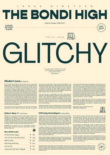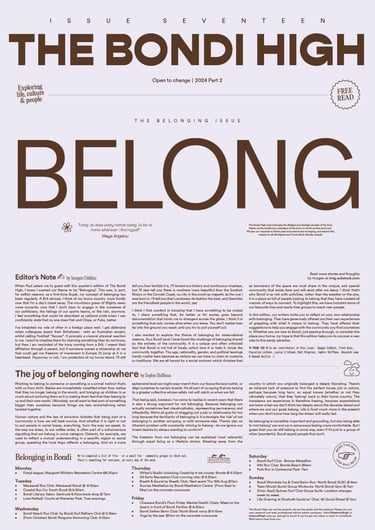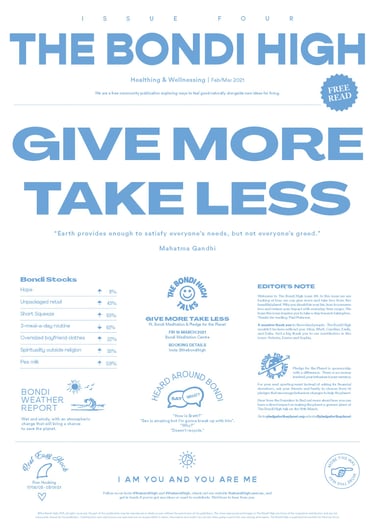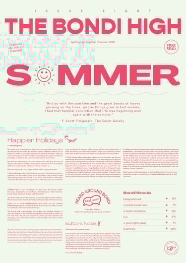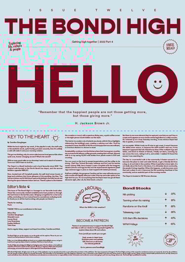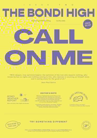 The aim of the Bondi High is to bring people together by sharing positive ideas about how we can live better individually and as a community.
